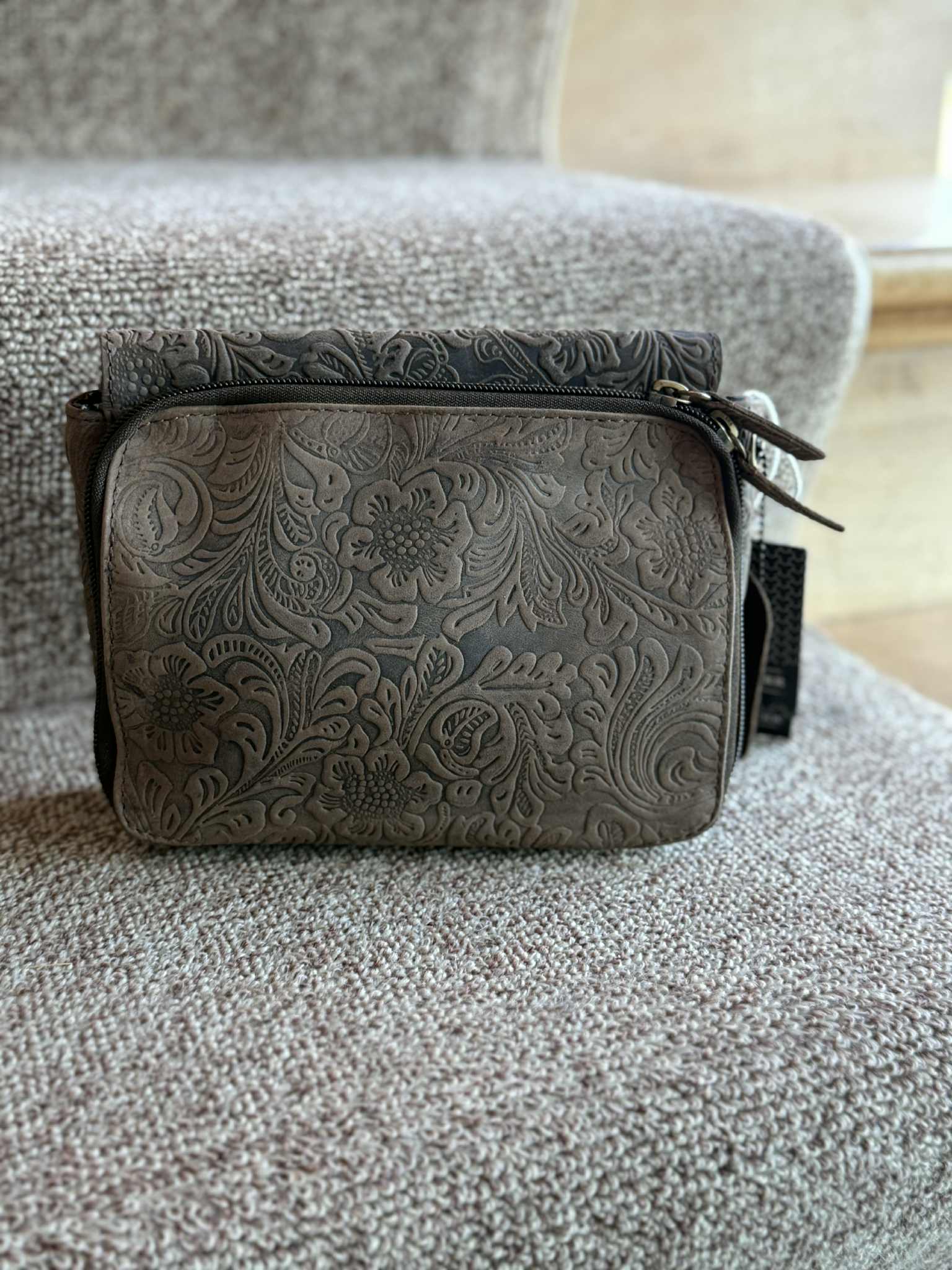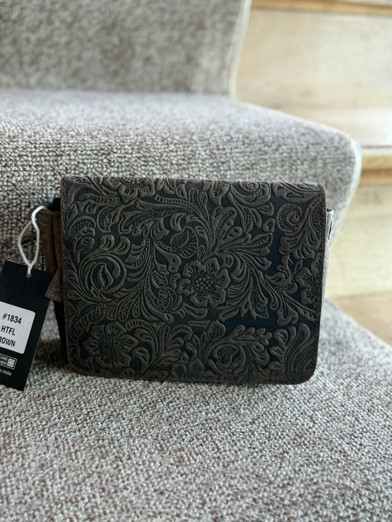 This genuine brown leather purse features exquisite flower tooling that highlights its artisanal quality. Designed with a concealed carry compartment, it offers discreet security without compromising on style. Compact and elegantly crafted, this western-inspired handbag combines practicality with refined sophistication, making it a timeless accessory for the modern woman.