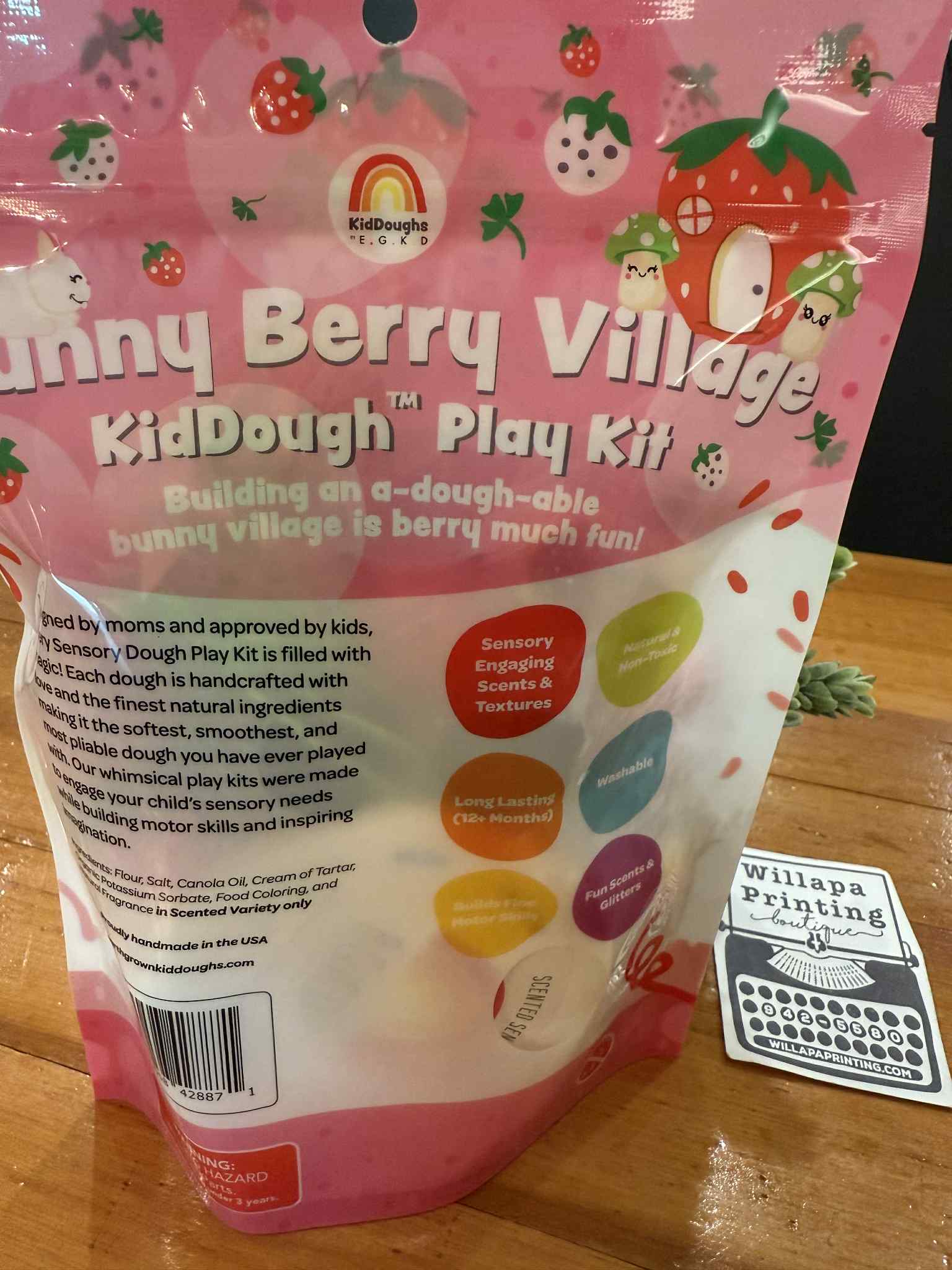 Hop into imaginative play with KID DOUGH! Bunny Berry Village, a delightful scented play kit designed to spark creativity in young minds. This charming set combines soft, moldable dough with a berry-scented experience that engages multiple senses during playtime. Perfect for building fine motor skills while creating adorable bunny-themed scenes and berry-filled adventures, this kit offers hours of screen-free entertainment. Watch your child's imagination flourish as they shape, sculpt, and storytell their way through a whimsical village. An ideal gift for creative kids (OR ADULTS!!) who love sensory play and hands-on fun.