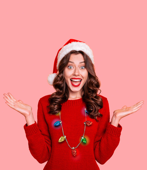 Light up the season with nostalgic charm! This festive necklace features 9 ultra-bright LED bulbs with a shimmering mercury glass finish that captures the magic of vintage holiday décor. Perfect for spreading holiday cheer at parties, office celebrations, and seasonal events, it's an instant conversation starter. The simple on/off switch makes it effortless to wear, and batteries are included—just slip it on and shine. Bring back the warmth and wonder of classic holiday traditions with this eye-catching accessory that's sure to delight.